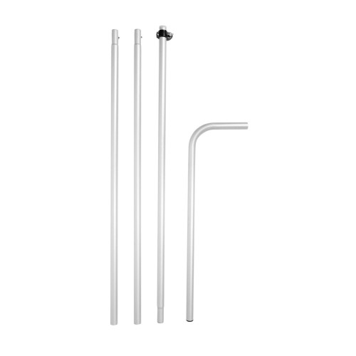 Materials: Aluminiumprofile (10 mm dick). Der horizontale L-förmige Teil (Powerarm) misst 11 cm an der Stelle, an der er am vertikalen Mast befestigt ist, und der horizontale Teil (derjenige, der in die Fahnenmasthülle eingeführt wird) misst ca. 84 cm.