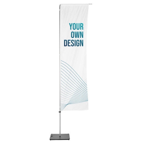 Fly Banner Rektangulær er en type Fly Banner med en omvendt "L"-form. Det har en kraftarm, der sættes ind i den øverste del af et banner, hvilket gør det perfekt til lodret reklame. Det er det flyvebanner, der giver mest overflade til at vise reklamedesignet på det banner, det bærer.