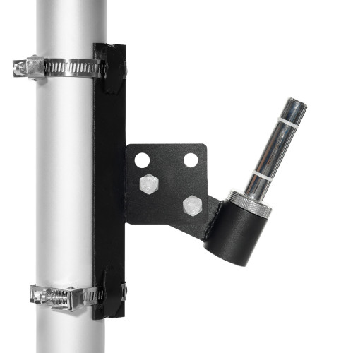 Base Univeral con bridas que permite colocar Fly Banners en múltiples soportes tubulares, como por ejemplo: farolas, postes de señalización vial, columnas metálicas de aparcamientos o barandillas. Gracias a su construcción robusta la base universal con bridas asegura una fijación segura y estable, resistiendo vientos y condiciones climáticas adversas. Su ventaja principal es que no requiere perforar ni dañar la superficie, solo requiere un soporte tubular donde ajustar las bridas. La instalación es sencilla y se recomienda el uso de destornillador para su correcta fijación.