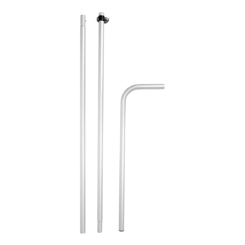 Materials: Aluminium sections (10mm thick). The horizontal (power arm) L-shaped section measures 11 cm where it is attached to the vertical pole and the horizontal section (the one that is inserted into the flag pole sheath) measures approx. 84 cm.