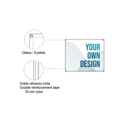 It has a reinforcement tape around the perimeter of the flag and eyelets every 50 or 100 cm for easy knotting.