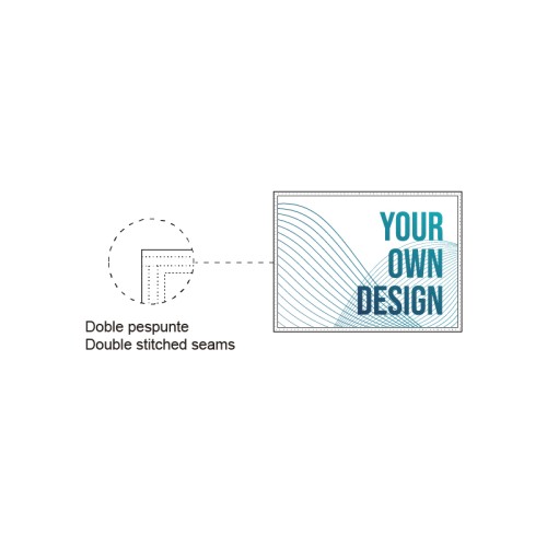 Flag with customisable variable sizes. Maximum dimensions The maximum area of the flag may not exceed 144 square metres. Important: Due to the high temperatures of the sublimation process, the flag fabric may shrink by up to ±5%. |