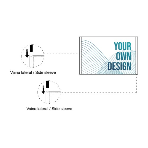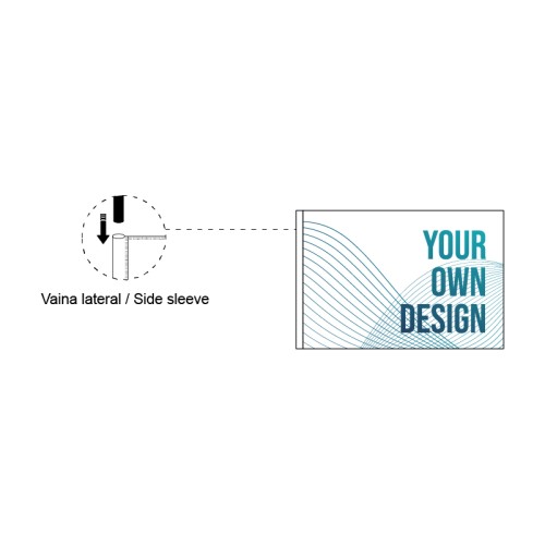 Horizontal flag with customisable measurements. Maximum dimensions The maximum area of the flag may not exceed 144 square metres. Important: Due to the high temperatures of the sublimation process, the flag fabric may shrink by up to ±5%. |