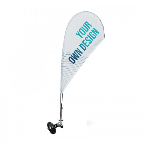 Flagget er laget av polyesterstoff og kan tilpasses med farger og/eller design etter eget valg.